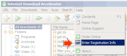 2. Start Internet Download Accelerator and choose the Enter Registration Info from the